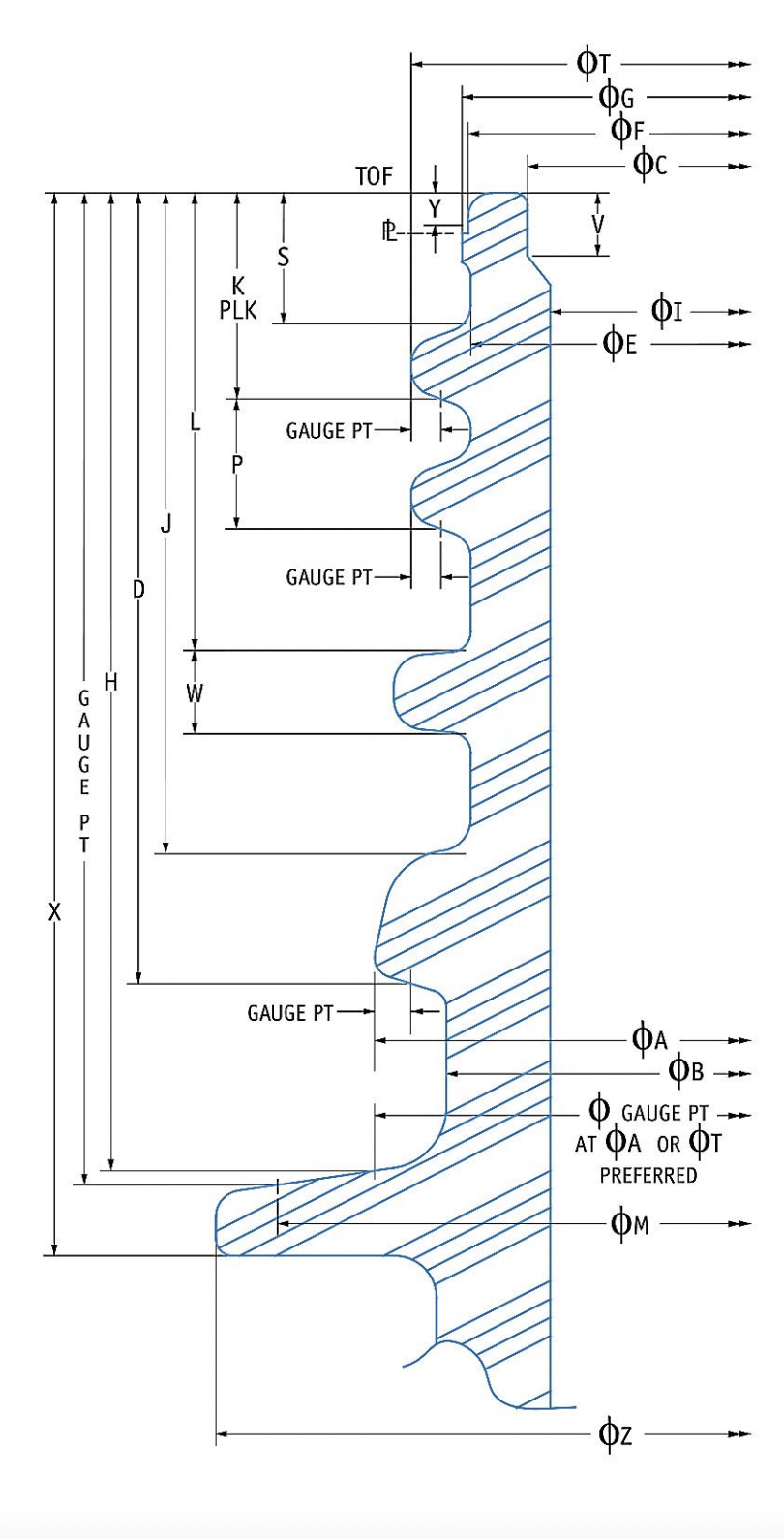 See Figure 4 – Nomenclature of main PET finish dimensions from data sheet DT23.03 - PET finishes glossary and nomenclature