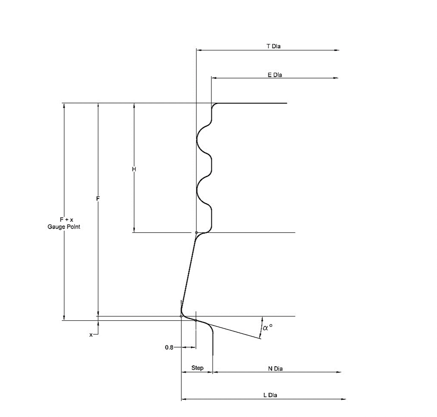 See Table 1 - Nomenclature of a glass container from data sheet DT23.01 - GLASS CONTAINER NOMENCLATURE.